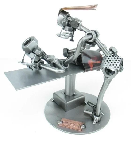 De metalen bouten en moeren beeldjes, ook wel moerenmannetjes genoemd, zijn gemaakt in originele Hinz en Kunst kwaliteit, uitvoerig en zorgvuldig handgemaakt. Als gevolg van deze afwerking is elk afzonderlijk metalenbeeldje uniek en voldoet aan de hoogste kwaliteitsnormen. Hierdoor kunnen de beeldjes soms iets afwijken van de productfoto. Deze kleine stukjes van kunst die bestaan uit schroeven, moeren, bouten, metaal en koper worden geproduceerd met een hoog niveau van vakmanschap en een oog voor detail, in een intensief en ingewikkeld productieproces. Op hetzelfde moment zijn ze niet alleen gekenmerkt door hun buitengewone creativiteit, maar ook door unieke aandacht voor detail.