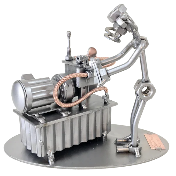 De metalen bouten en moeren beeldjes, ook wel moerenmannetjes genoemd, zijn gemaakt in originele Steelman kwaliteit, uitvoerig en zorgvuldig handgemaakt. Als gevolg van deze afwerking is elk afzonderlijk metalenbeeldje uniek en voldoet aan de hoogste kwaliteitsnormen. Deze kleine stukjes van kunst die bestaan uit schroeven, moeren, bouten, metaal en koper worden geproduceerd met een hoog niveau van vakmanschap en een oog voor detail, in een intensief en ingewikkeld productieproces. Op hetzelfde moment zijn ze niet alleen gekenmerkt door hun buitengewone creativiteit, maar ook door unieke aandacht voor detail.