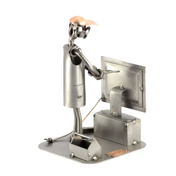 De metalen bouten en moeren beeldjes, ook wel moerenmannetjes genoemd, zijn gemaakt in originele Steelman24 kwaliteit, uitvoerig en zorgvuldig handgemaakt. Als gevolg van deze afwerking is elk afzonderlijk metalenbeeldje uniek en voldoet aan de hoogste kwaliteitsnormen. Hierdoor kunnen de beeldjes soms iets afwijken van de productfoto. Deze kleine stukjes van kunst die bestaan uit schroeven, moeren, bouten, metaal en koper worden geproduceerd met een hoog niveau van vakmanschap en een oog voor detail, in een intensief en ingewikkeld productieproces. Op hetzelfde moment zijn ze niet alleen gekenmerkt door hun buitengewone creativiteit, maar ook door unieke aandacht voor detail.