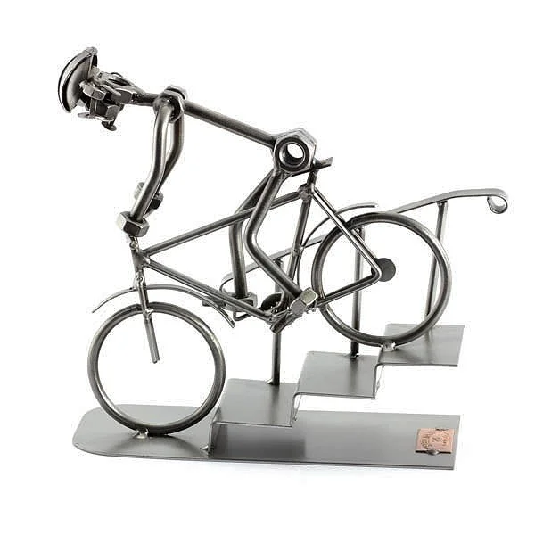 Elke ambachtsman vervaardigt deze beeldjes nauwkeurig met de hand, waarbij zij hoogwaardige materialen zoals schroeven, moeren en koper gebruiken. Dit zorgt ervoor dat elk beeldje uniek is, met de hoogste kwaliteitsnormen. Het beeldje weerspiegelt vakmanschap op het hoogste niveau, wat het tot een waardevol en bijzonder kunstwerk maakt. Het proces om elk beeldje te maken is intensief en complex, wat het een waar kunstwerk maakt voor zowel mountainbikeliefhebbers als kunstliefhebbers.