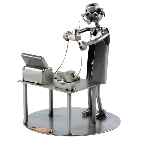 De fysicus is bezig met zijn onderzoek. Dit metalen beeldje is een origineel en blijvend verjaardagscadeau om te geven aan een natuurkundige. Ook een uniek cadeau om te geven nadat de ontvanger zijn proefschrift heeft verdedigd. Wilt u het originele geschenk persoonlijker maken dan kunt u het gegraveerde plaatje erbij bestellen. Het gegraveerde plaatje heeft artikelnummer 10000.