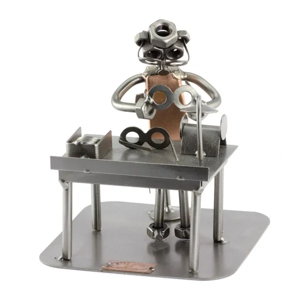 De metalen bouten en moeren beeldjes, ook wel moerenmannetjes genoemd, zijn gemaakt in originele Steelman24 kwaliteit, uitvoerig en zorgvuldig handgemaakt. Als gevolg van deze afwerking is elk afzonderlijk metalenbeeldje uniek en voldoet aan de hoogste kwaliteitsnormen. Hierdoor kunnen de beeldjes soms iets afwijken van de productfoto. Deze kleine stukjes van kunst die bestaan uit schroeven, moeren, bouten, metaal en koper worden geproduceerd met een hoog niveau van vakmanschap en een oog voor detail, in een intensief en ingewikkeld productieproces. Op hetzelfde moment zijn ze niet alleen gekenmerkt door hun buitengewone creativiteit, maar ook door unieke aandacht voor detail.