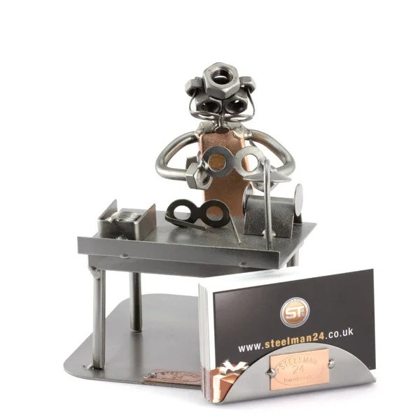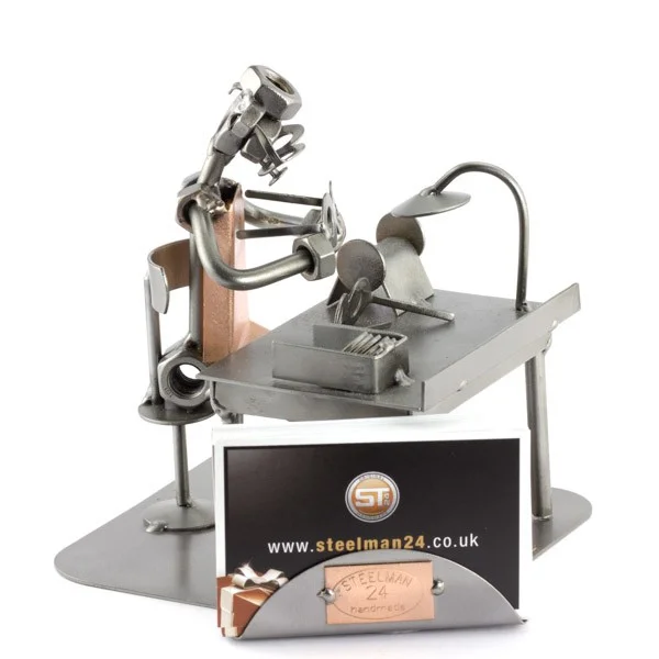 De metalen bouten en moeren beeldjes, ook wel moerenmannetjes genoemd, zijn gemaakt in originele Steelman24 kwaliteit, uitvoerig en zorgvuldig handgemaakt. Als gevolg van deze afwerking is elk afzonderlijk metalenbeeldje uniek en voldoet aan de hoogste kwaliteitsnormen. Hierdoor kunnen de beeldjes soms iets afwijken van de productfoto. Deze kleine stukjes van kunst die bestaan uit schroeven, moeren, bouten, metaal en koper worden geproduceerd met een hoog niveau van vakmanschap en een oog voor detail, in een intensief en ingewikkeld productieproces. Op hetzelfde moment zijn ze niet alleen gekenmerkt door hun buitengewone creativiteit, maar ook door unieke aandacht voor detail.