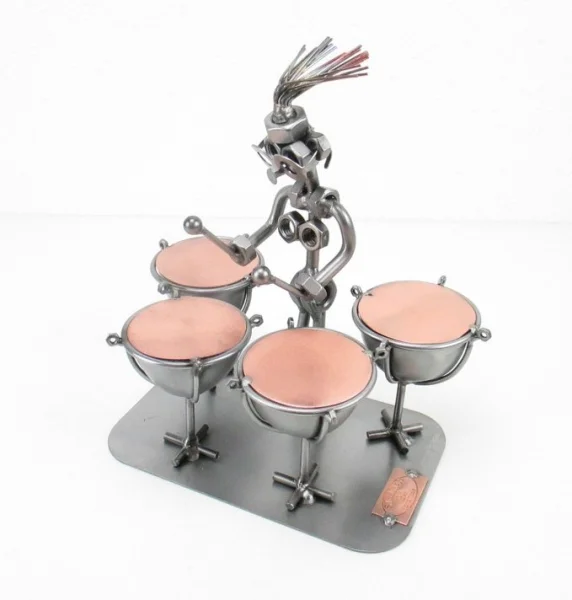 De paukeniste slaat met veel plezier op de pauk. Deze mooie muziekbeeldjes zullen zeker mooi staan, waar u ze ook neer zet.