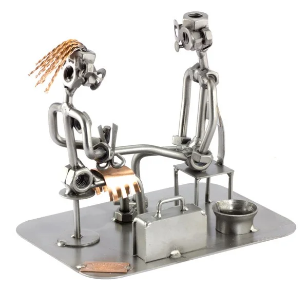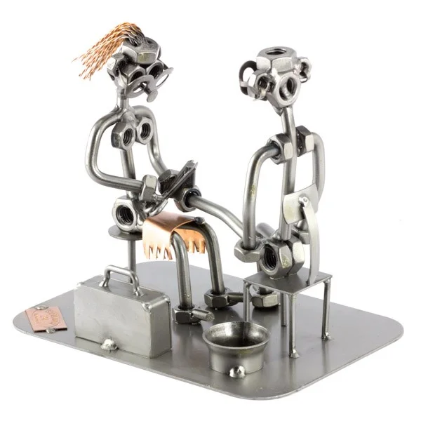 De metalen bouten en moeren beeldjes, ook wel moerenmannetjes genoemd, zijn gemaakt in originele Steelman24 kwaliteit, uitvoerig en zorgvuldig handgemaakt. Als gevolg van deze afwerking is elk afzonderlijk metalenbeeldje uniek en voldoet aan de hoogste kwaliteitsnormen. Hierdoor kunnen de beeldjes soms iets afwijken van de productfoto. Deze kleine stukjes van kunst die bestaan uit schroeven, moeren, bouten, metaal en koper worden geproduceerd met een hoog niveau van vakmanschap en een oog voor detail, in een intensief en ingewikkeld productieproces. Op hetzelfde moment zijn ze niet alleen gekenmerkt door hun buitengewone creativiteit, maar ook door unieke aandacht voor detail.