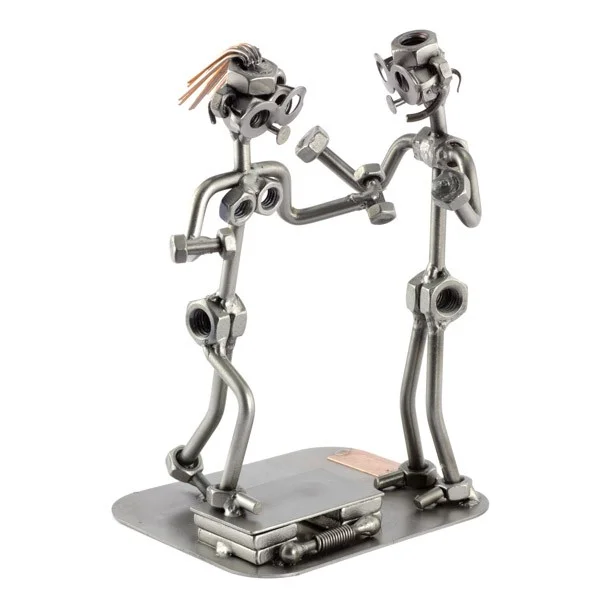 De metalen bouten en moeren beeldjes, ook wel moerenmannetjes genoemd, zijn gemaakt in originele Steelman kwaliteit, uitvoerig en zorgvuldig handgemaakt. Als gevolg van deze afwerking is elk afzonderlijk metalenbeeldje uniek en voldoet aan de hoogste kwaliteitsnormen. Deze kleine stukjes van kunst die bestaan uit schroeven, moeren, bouten, metaal en koper worden geproduceerd met een hoog niveau van vakmanschap en een oog voor detail, in een intensief en ingewikkeld productieproces. Op hetzelfde moment zijn ze niet alleen gekenmerkt door hun buitengewone creativiteit, maar ook door unieke aandacht voor detail.