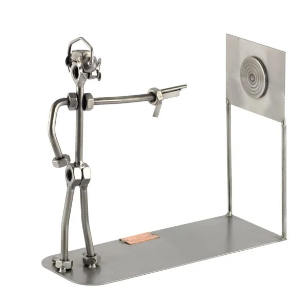 De metalen bouten en moeren beeldjes, ook wel moerenmannetjes genoemd, zijn gemaakt in originele Steelman kwaliteit, uitvoerig en zorgvuldig handgemaakt. Als gevolg van deze afwerking is elk afzonderlijk metalenbeeldje uniek en voldoet aan de hoogste kwaliteitsnormen. Deze kleine stukjes van kunst die bestaan uit schroeven, moeren, bouten, metaal en koper worden geproduceerd met een hoog niveau van vakmanschap en een oog voor detail, in een intensief en ingewikkeld productieproces. Op hetzelfde moment zijn ze niet alleen gekenmerkt door hun buitengewone creativiteit, maar ook door unieke aandacht voor detail.