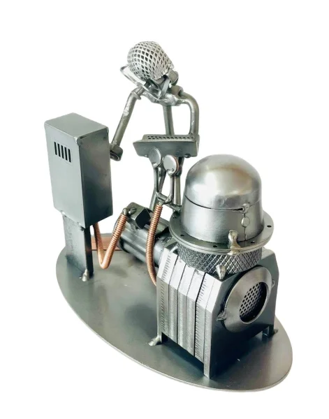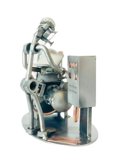 Het industriële karakter van het beeldje zorgt ervoor dat het goed past in verschillende omgevingen. Op kantoor, in een kantine, in een thuiswerkruimte of zelfs in een vitrinekast binnen een bedrijf. Het is geen trendgevoelig object, maar een tijdloos symbool van vakmanschap.