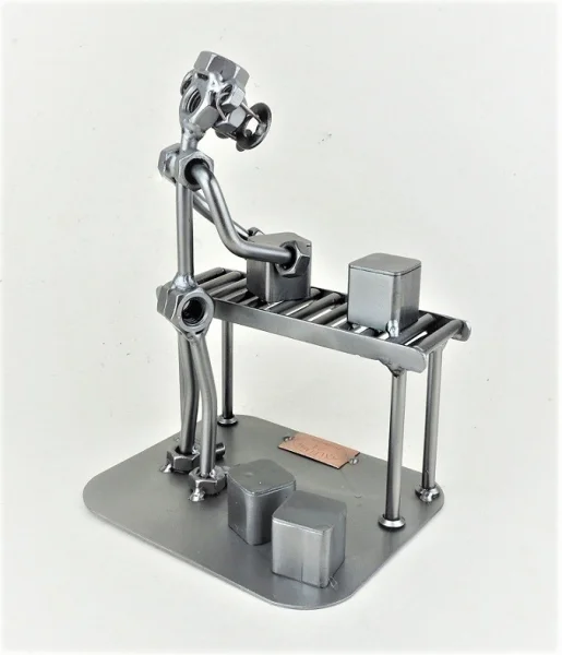 De metalen bouten en moeren beeldjes, ook wel moerenmannetjes genoemd, zijn gemaakt in originele Steelman24 kwaliteit, uitvoerig en zorgvuldig handgemaakt. Als gevolg van deze afwerking is elk afzonderlijk metalenbeeldje uniek en voldoet aan de hoogste kwaliteitsnormen. Hierdoor kunnen de beeldjes soms iets afwijken van de productfoto. Deze kleine stukjes van kunst die bestaan uit schroeven, moeren, bouten, metaal en koper worden geproduceerd met een hoog niveau van vakmanschap en een oog voor detail, in een intensief en ingewikkeld productieproces. Op hetzelfde moment zijn ze niet alleen gekenmerkt door hun buitengewone creativiteit, maar ook door unieke aandacht voor detail.