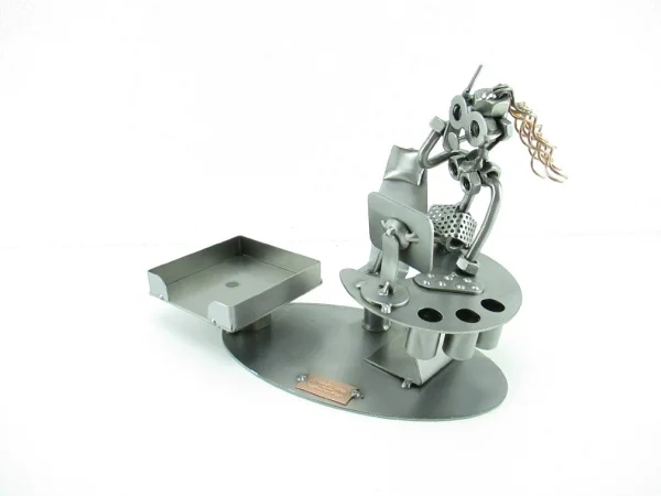 Veel mensen zoeken online naar een origineel bureauaccessoire, grappig cadeau voor receptioniste of een metalen pennenhouder met figuurtje. Dit ontwerp beantwoordt al deze zoekopdrachten. Het is stijlvol, functioneel en met een knipoog ontworpen – perfect voor iemand die het werk achter de balie of aan de telefoon met flair en toewijding uitvoert.