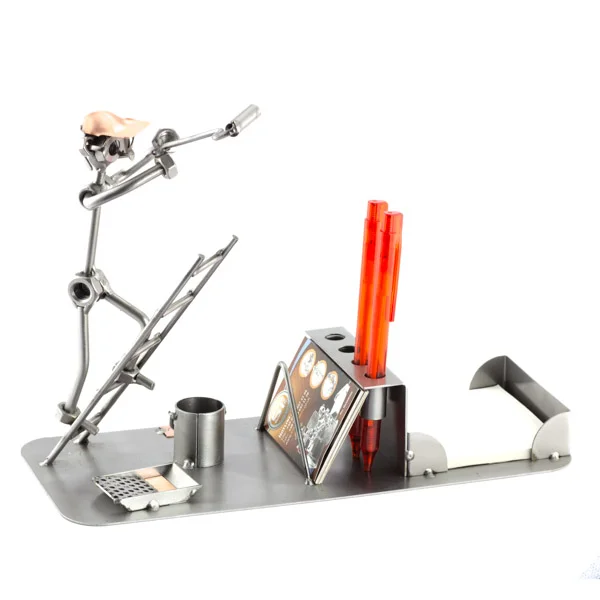 Schilder met papierbak / pennenstandaard en visitekaarthouder. Deze mooie beroepenbeeldjes zullen zeker mooi staan, waar u ze ook neer zet. De ontvanger zal dit cadeau zeker waarderen.