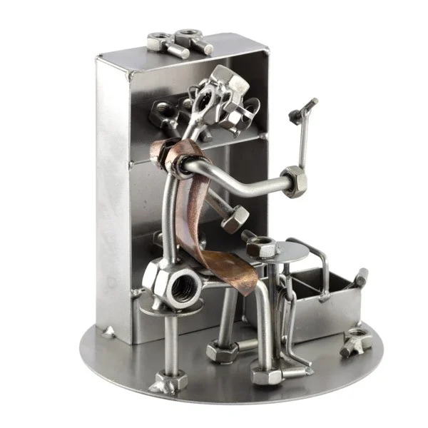 De metalen bouten en moeren beeldjes, ook wel moerenmannetjes genoemd, zijn gemaakt in originele Steelman24 kwaliteit, uitvoerig en zorgvuldig handgemaakt. Als gevolg van deze afwerking is elk afzonderlijk metalenbeeldje uniek en voldoet aan de hoogste kwaliteitsnormen. Hierdoor kunnen de beeldjes soms iets afwijken van de productfoto. Deze kleine stukjes van kunst die bestaan uit schroeven, moeren, bouten, metaal en koper worden geproduceerd met een hoog niveau van vakmanschap en een oog voor detail, in een intensief en ingewikkeld productieproces. Op hetzelfde moment zijn ze niet alleen gekenmerkt door hun buitengewone creativiteit, maar ook door unieke aandacht voor detail.