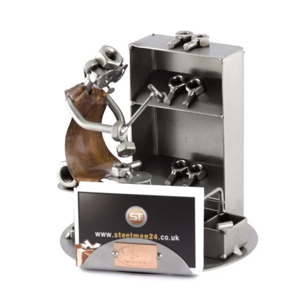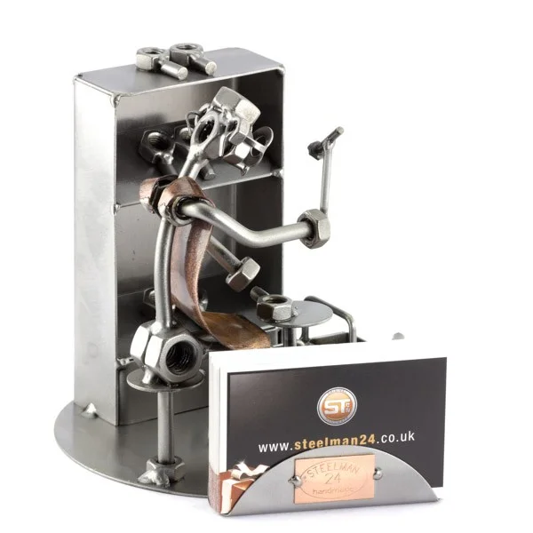 De metalen bouten en moeren beeldjes, ook wel moerenmannetjes genoemd, zijn gemaakt in originele Steelman24 kwaliteit, uitvoerig en zorgvuldig handgemaakt. Als gevolg van deze afwerking is elk afzonderlijk metalenbeeldje uniek en voldoet aan de hoogste kwaliteitsnormen. Hierdoor kunnen de beeldjes soms iets afwijken van de productfoto. Deze kleine stukjes van kunst die bestaan uit schroeven, moeren, bouten, metaal en koper worden geproduceerd met een hoog niveau van vakmanschap en een oog voor detail, in een intensief en ingewikkeld productieproces. Op hetzelfde moment zijn ze niet alleen gekenmerkt door hun buitengewone creativiteit, maar ook door unieke aandacht voor detail.