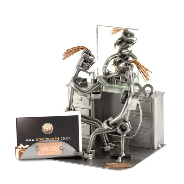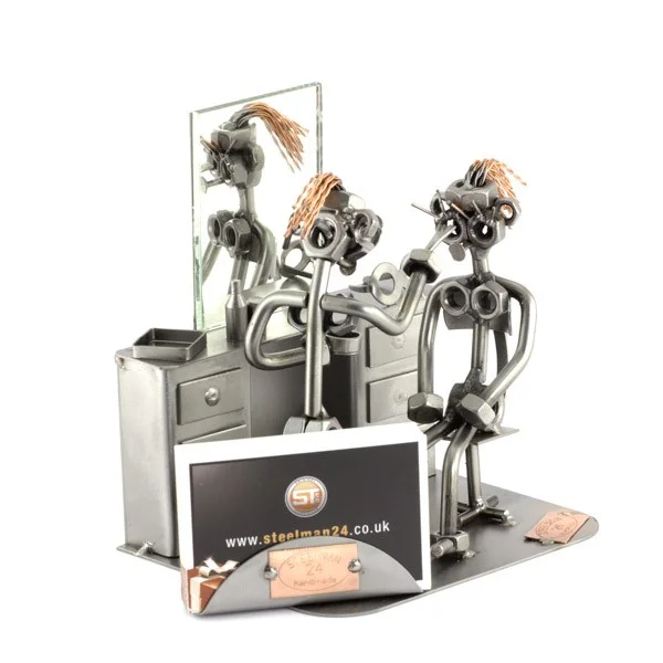 De metalen bouten en moeren beeldjes, ook wel moerenmannetjes genoemd, zijn gemaakt in originele Steelman24 kwaliteit, uitvoerig en zorgvuldig handgemaakt. Als gevolg van deze afwerking is elk afzonderlijk metalenbeeldje uniek en voldoet aan de hoogste kwaliteitsnormen. Hierdoor kunnen de beeldjes soms iets afwijken van de productfoto. Deze kleine stukjes van kunst die bestaan uit schroeven, moeren, bouten, metaal en koper worden geproduceerd met een hoog niveau van vakmanschap en een oog voor detail, in een intensief en ingewikkeld productieproces. Op hetzelfde moment zijn ze niet alleen gekenmerkt door hun buitengewone creativiteit, maar ook door unieke aandacht voor detail.