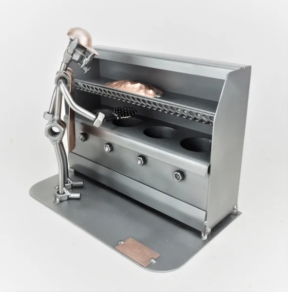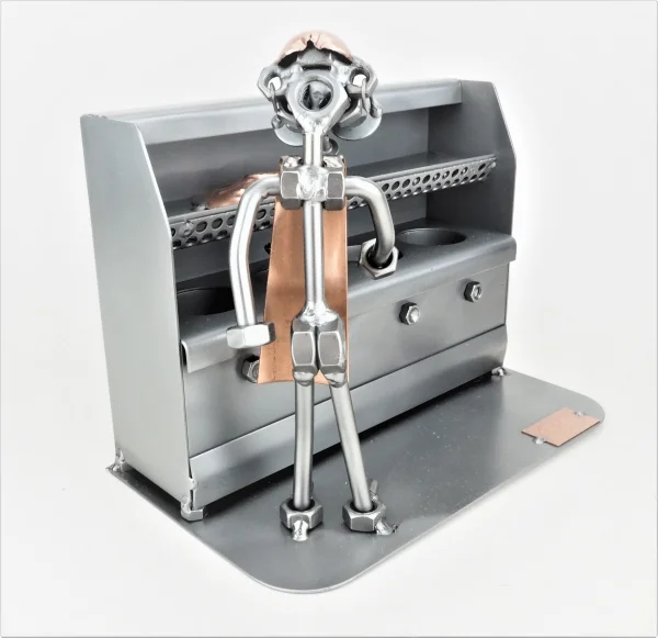 De metalen bouten en moeren beeldjes, ook wel moerenmannetjes genoemd, zijn gemaakt in originele Steelman24 kwaliteit, uitvoerig en zorgvuldig handgemaakt. Als gevolg van deze afwerking is elk afzonderlijk metalenbeeldje uniek en voldoet aan de hoogste kwaliteitsnormen. Hierdoor kunnen de beeldjes soms iets afwijken van de productfoto. Deze kleine stukjes van kunst die bestaan uit schroeven, moeren, bouten, metaal en koper worden geproduceerd met een hoog niveau van vakmanschap en een oog voor detail, in een intensief en ingewikkeld productieproces. Op hetzelfde moment zijn ze niet alleen gekenmerkt door hun buitengewone creativiteit, maar ook door unieke aandacht voor detail.