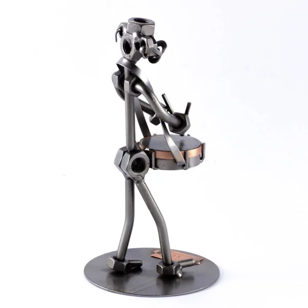 De snare drum heeft afmetingen van 18 x 6 x 6 cm, waardoor hij een compacte maar krachtige uitstraling heeft. Met dit beeldje haal je niet alleen een mooi object in huis, maar ook een stukje vakmanschap en creativiteit. Het beeldje is vervaardigd in originele Steelman24 kwaliteit en is uitvoerig en zorgvuldig handgemaakt. Dit betekent dat elk exemplaar uniek is en voldoet aan de hoogste kwaliteitsnormen. Doordat de metalen bouten, moeren, schroeven en het koper met de hand worden verwerkt in een intensief en ingewikkeld productieproces, kan het beeldje soms iets afwijken van de productfoto. Deze kleine variaties maken elk beeldje extra speciaal en authentiek.
