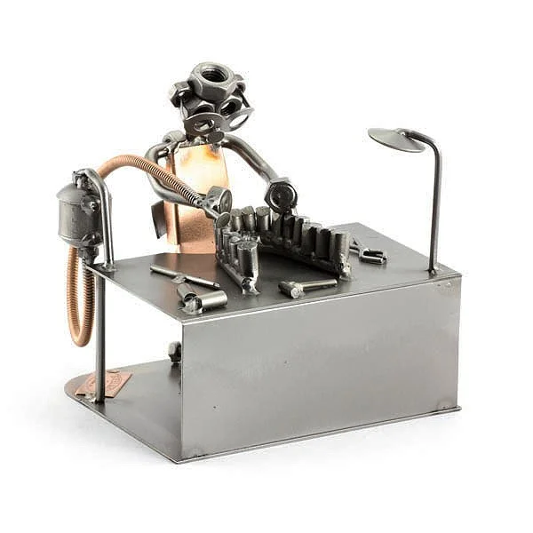De metalen bouten en moeren beeldjes, ook wel moerenmannetjes genoemd, zijn gemaakt in originele Steelman24 kwaliteit, uitvoerig en zorgvuldig handgemaakt. Als gevolg van deze afwerking is elk afzonderlijk metalenbeeldje uniek en voldoet aan de hoogste kwaliteitsnormen. Hierdoor kunnen de beeldjes soms iets afwijken van de productfoto. Deze kleine stukjes van kunst die bestaan uit schroeven, moeren, bouten, metaal en koper worden geproduceerd met een hoog niveau van vakmanschap en een oog voor detail, in een intensief en ingewikkeld productieproces. Op hetzelfde moment zijn ze niet alleen gekenmerkt door hun buitengewone creativiteit, maar ook door unieke aandacht voor detail.