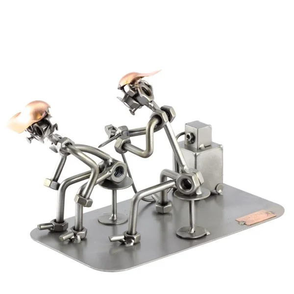 De metalen bouten en moeren beeldjes, ook wel moerenmannetjes genoemd, zijn gemaakt in originele Steelman24 kwaliteit, uitvoerig en zorgvuldig handgemaakt. Als gevolg van deze afwerking is elk afzonderlijk metalenbeeldje uniek en voldoet aan de hoogste kwaliteitsnormen. Hierdoor kunnen de beeldjes soms iets afwijken van de productfoto. Deze kleine stukjes van kunst die bestaan uit schroeven, moeren, bouten, metaal en koper worden geproduceerd met een hoog niveau van vakmanschap en een oog voor detail, in een intensief en ingewikkeld productieproces. Op hetzelfde moment zijn ze niet alleen gekenmerkt door hun buitengewone creativiteit, maar ook door unieke aandacht voor detail.