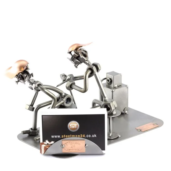 De metalen bouten en moeren beeldjes, ook wel moerenmannetjes genoemd, zijn gemaakt in originele Steelman24 kwaliteit, uitvoerig en zorgvuldig handgemaakt. Als gevolg van deze afwerking is elk afzonderlijk metalenbeeldje uniek en voldoet aan de hoogste kwaliteitsnormen. Hierdoor kunnen de beeldjes soms iets afwijken van de productfoto. Deze kleine stukjes van kunst die bestaan uit schroeven, moeren, bouten, metaal en koper worden geproduceerd met een hoog niveau van vakmanschap en een oog voor detail, in een intensief en ingewikkeld productieproces. Op hetzelfde moment zijn ze niet alleen gekenmerkt door hun buitengewone creativiteit, maar ook door unieke aandacht voor detail.