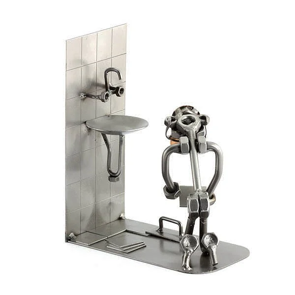 De metalen bouten en moeren beeldjes, ook wel moerenmannetjes genoemd, zijn gemaakt in originele Steelman24 kwaliteit, uitvoerig en zorgvuldig handgemaakt. Als gevolg van deze afwerking is elk afzonderlijk metalenbeeldje uniek en voldoet aan de hoogste kwaliteitsnormen. Hierdoor kunnen de beeldjes soms iets afwijken van de productfoto. Deze kleine stukjes van kunst die bestaan uit schroeven, moeren, bouten, metaal en koper worden geproduceerd met een hoog niveau van vakmanschap en een oog voor detail, in een intensief en ingewikkeld productieproces. Op hetzelfde moment zijn ze niet alleen gekenmerkt door hun buitengewone creativiteit, maar ook door unieke aandacht voor detail.