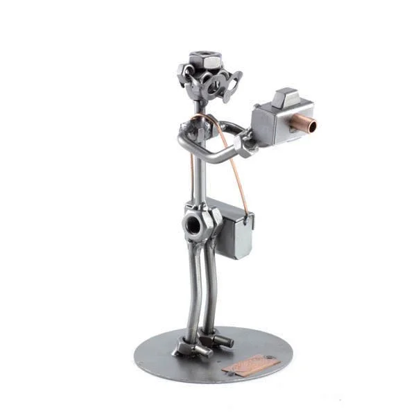De metalen bouten en moeren beeldjes, ook wel moerenmannetjes genoemd, zijn gemaakt in originele Steelman24 kwaliteit, uitvoerig en zorgvuldig handgemaakt. Als gevolg van deze afwerking is elk afzonderlijk metalenbeeldje uniek en voldoet aan de hoogste kwaliteitsnormen. Hierdoor kunnen de beeldjes soms iets afwijken van de productfoto. Deze kleine stukjes van kunst die bestaan uit schroeven, moeren, bouten, metaal en koper worden geproduceerd met een hoog niveau van vakmanschap en een oog voor detail, in een intensief en ingewikkeld productieproces. Op hetzelfde moment zijn ze niet alleen gekenmerkt door hun buitengewone creativiteit, maar ook door unieke aandacht voor detail.