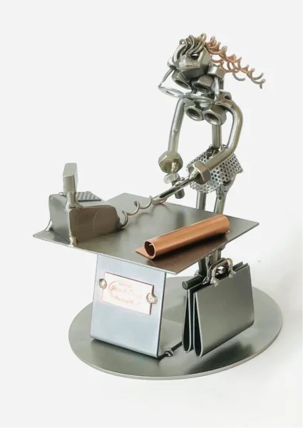De metalen bouten en moeren beeldjes, ook wel moerenmannetjes genoemd, zijn gemaakt in originele Steelman24 kwaliteit, uitvoerig en zorgvuldig handgemaakt. Als gevolg van deze afwerking is elk afzonderlijk metalenbeeldje uniek en voldoet aan de hoogste kwaliteitsnormen. Hierdoor kunnen de beeldjes soms iets afwijken van de productfoto. Deze kleine stukjes van kunst die bestaan uit schroeven, moeren, bouten, metaal en koper worden geproduceerd met een hoog niveau van vakmanschap en een oog voor detail, in een intensief en ingewikkeld productieproces. Op hetzelfde moment zijn ze niet alleen gekenmerkt door hun buitengewone creativiteit, maar ook door unieke aandacht voor detail.