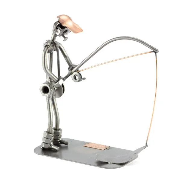 De visser met een vis aan de lijn. Deze mooie sportbeeldjes zullen zeker mooi staan, waar u ze ook neer zet.