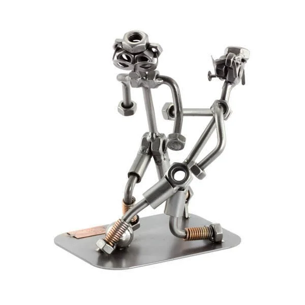 De metalen bouten en moeren beeldjes, ook wel moerenmannetjes genoemd, zijn gemaakt in originele Steelman24 kwaliteit, uitvoerig en zorgvuldig handgemaakt. Als gevolg van deze afwerking is elk afzonderlijk metalenbeeldje uniek en voldoet aan de hoogste kwaliteitsnormen. Deze kleine stukjes van kunst die bestaan uit schroeven, moeren, bouten, metaal en koper worden geproduceerd met een hoog niveau van vakmanschap en een oog voor detail, in een intensief en ingewikkeld productieproces. Op hetzelfde moment zijn ze niet alleen gekenmerkt door hun buitengewone creativiteit, maar ook door unieke aandacht voor detail.