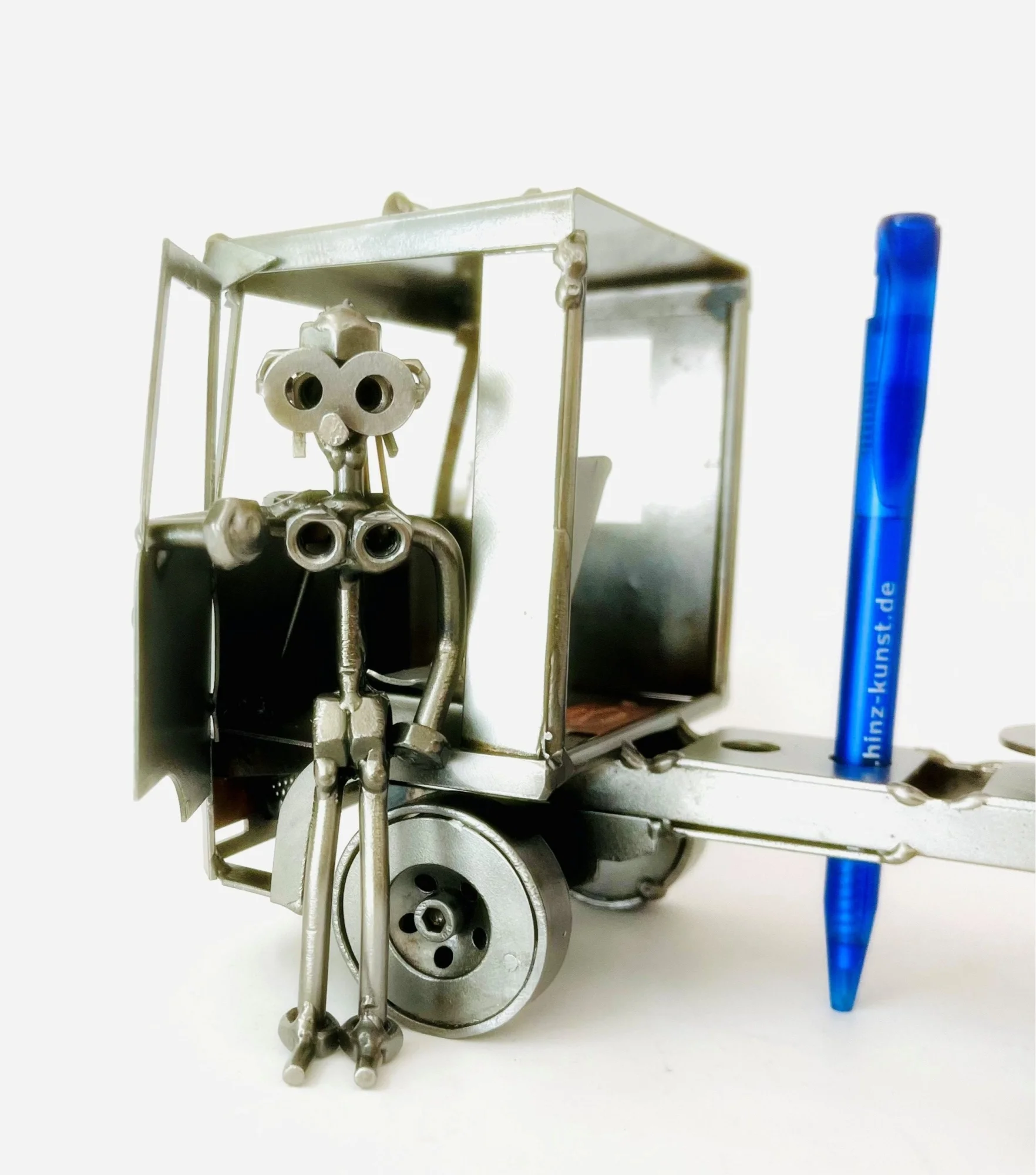 Elke vrouwelijke vrachtwagenchauffeur heeft een eigen verhaal. Dit beeldje vangt de essentie van die verhalen in staal. Het is volledig met de hand gemaakt, waardoor elk stuk net even anders is. Geen gepolijste massa-artikelen, maar bewust rustiek met zichtbare lasnaden en robuuste afwerking. Precies zoals het vak: puur, eerlijk en stoer.