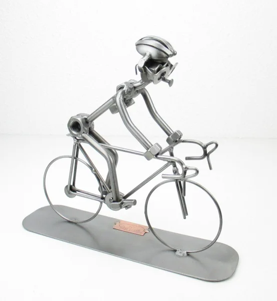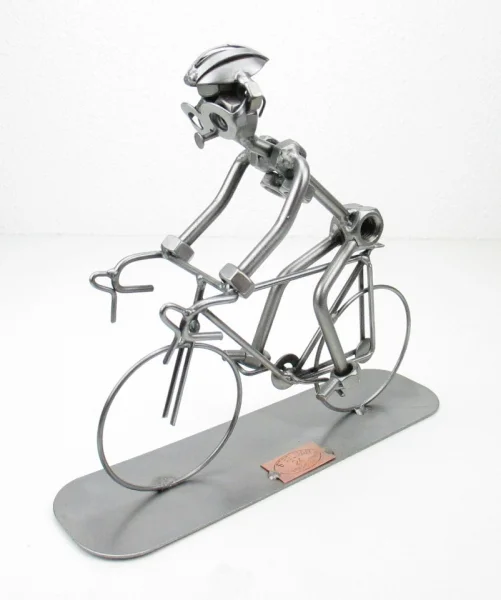 Uniek en handgemaakt Het wielrenster beeldje is handgemaakt, waarbij elk exemplaar zorgvuldig wordt vervaardigd van metalen onderdelen. Dit niveau van vakmanschap zorgt ervoor dat elk beeldje uniek is. De keuze van materialen, zoals schroeven, moeren en bouten, geeft het beeldje een robuuste en industriële uitstraling. Dit maakt het niet alleen een functioneel object, maar ook een artistiek kunstwerk dat perfect past in elk interieur.