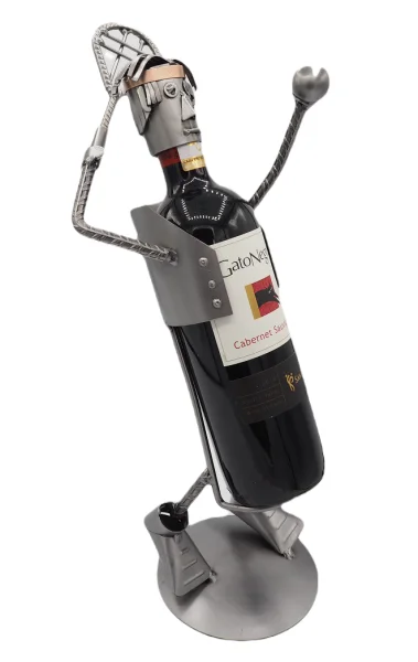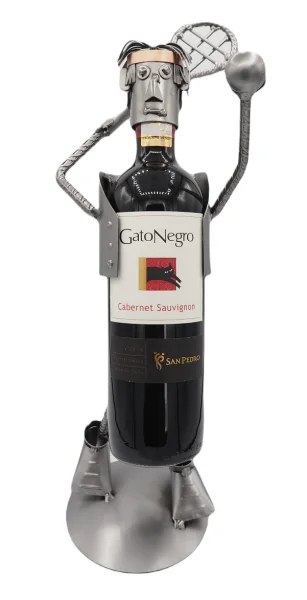 Wijnfleshouder Tenniser begint met een bovenhands geslagen service.