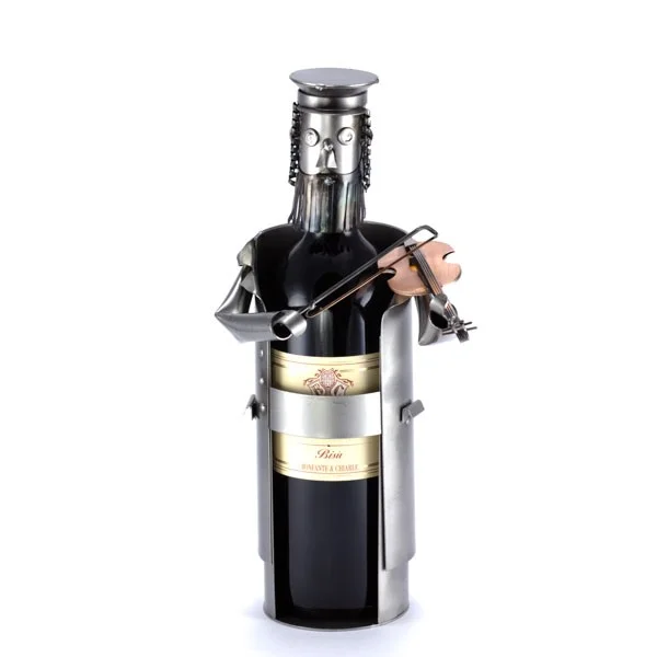 Wijnfleshouder violist. Deze mooie muziekbeeldjes zullen zeker mooi staan, waar u ze ook neer zet.