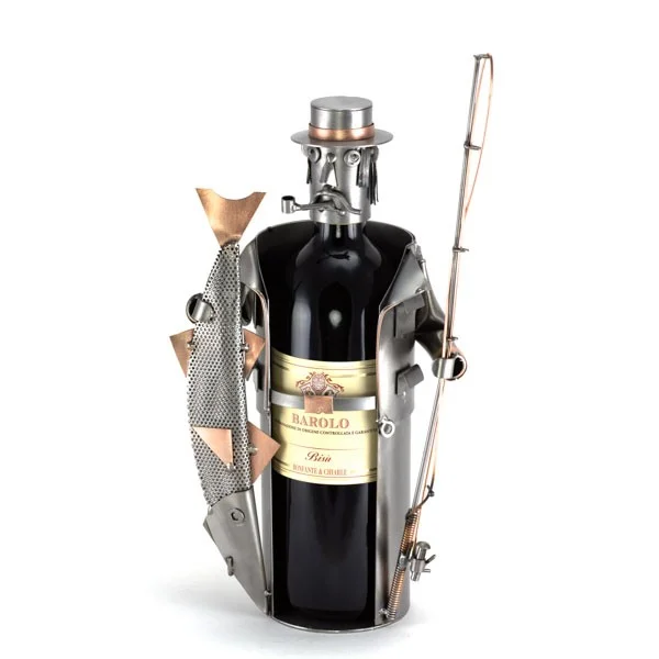 Wijnfleshouder visser. Levering zonder wijnfles.