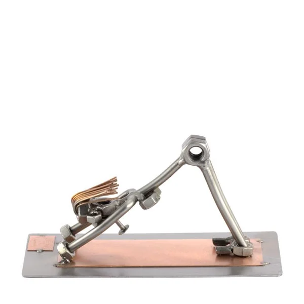 De metalen bouten en moeren beeldjes, ook wel moerenmannetjes genoemd, zijn gemaakt in originele Steelman kwaliteit, uitvoerig en zorgvuldig handgemaakt. Als gevolg van deze afwerking is elk afzonderlijk metalenbeeldje uniek en voldoet aan de hoogste kwaliteitsnormen. Deze kleine stukjes van kunst die bestaan uit schroeven, moeren, bouten, metaal en koper worden geproduceerd met een hoog niveau van vakmanschap en een oog voor detail, in een intensief en ingewikkeld productieproces. Op hetzelfde moment zijn ze niet alleen gekenmerkt door hun buitengewone creativiteit, maar ook door unieke aandacht voor detail.
